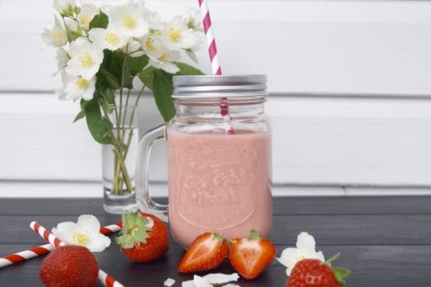 Boisson gourmande composée de fraises, d’ananas et lait de coco délicieusement parfumée à la vanille