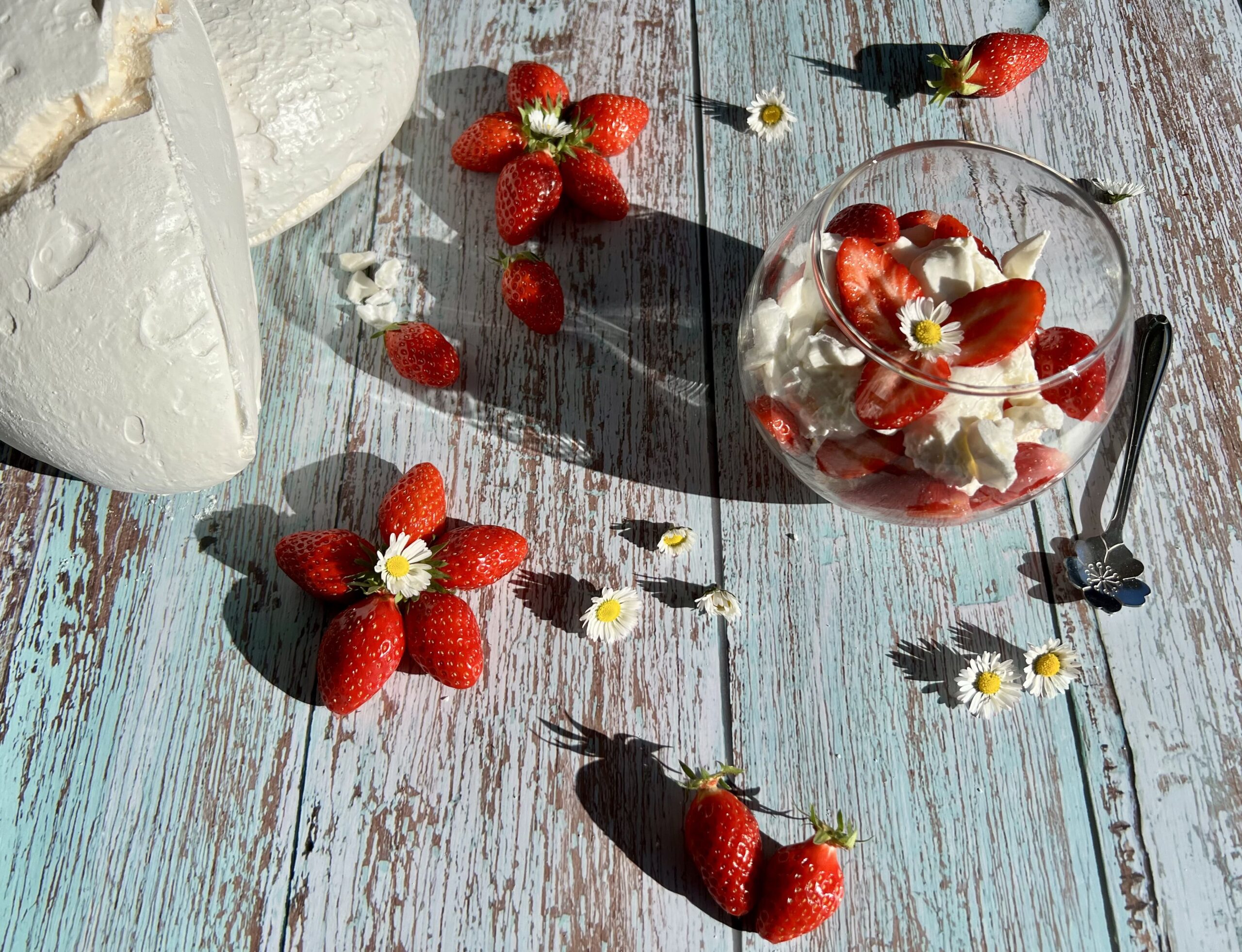 L’Eton mess est un dessert anglais, une sorte de pavlova aux fraises déstructurée, servie dans une verrine