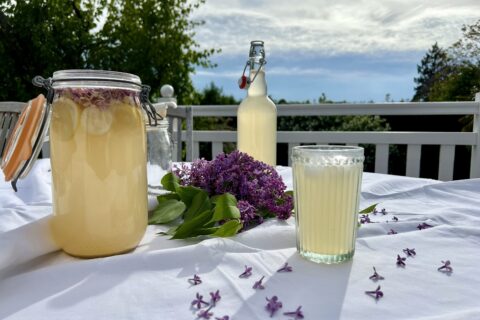 Boisson fermentée légèrement pétillante à base de fleurs de lilas et citron