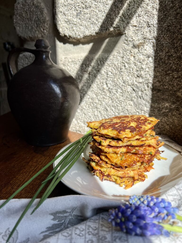 Ici les légumes sont râpés et précuits et j’ajoute toujours un peu de fromage et d’herbes pour plus de gourmandise.