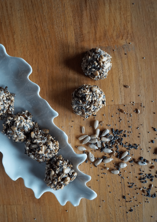 - Vous pouvez très bien faire des boules avec d’autres graines comme des graines de courge, de moutarde, du millet ou même mélanger ces graines avec quelques noisettes, noix, pistaches ou amandes hachées. Amusez-vous à faire votre propre mélange !