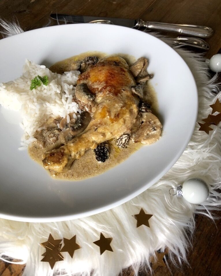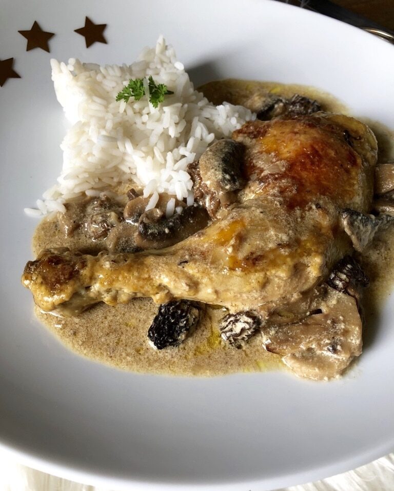 Chez ma maman, généralement on fait la vraie version du poulet aux morilles et au vin jaune.