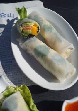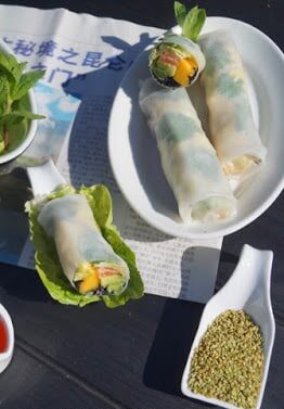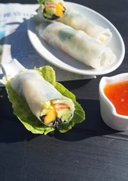 Rouleaux de printemps avocat, mangue et saumon mariné